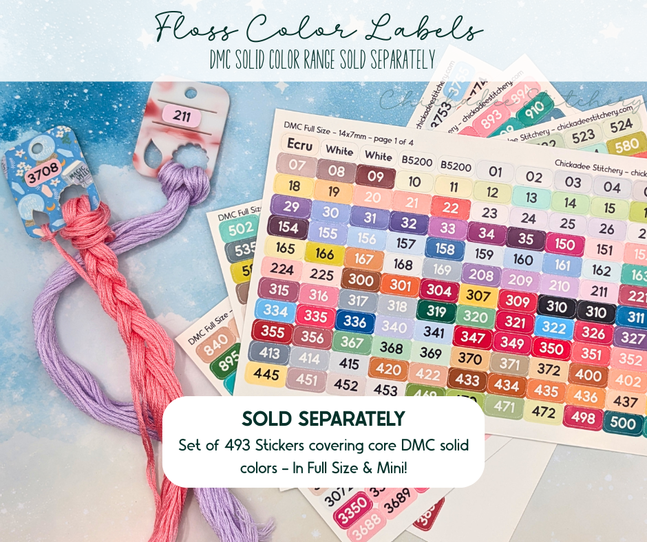 If you love our colorful DMC Floss Labels, but need to organize more than just the core colors, this is the set of stickers for you! Each sticker has the DMC number clearly printed on top of a background color or gradient representing the floss color!